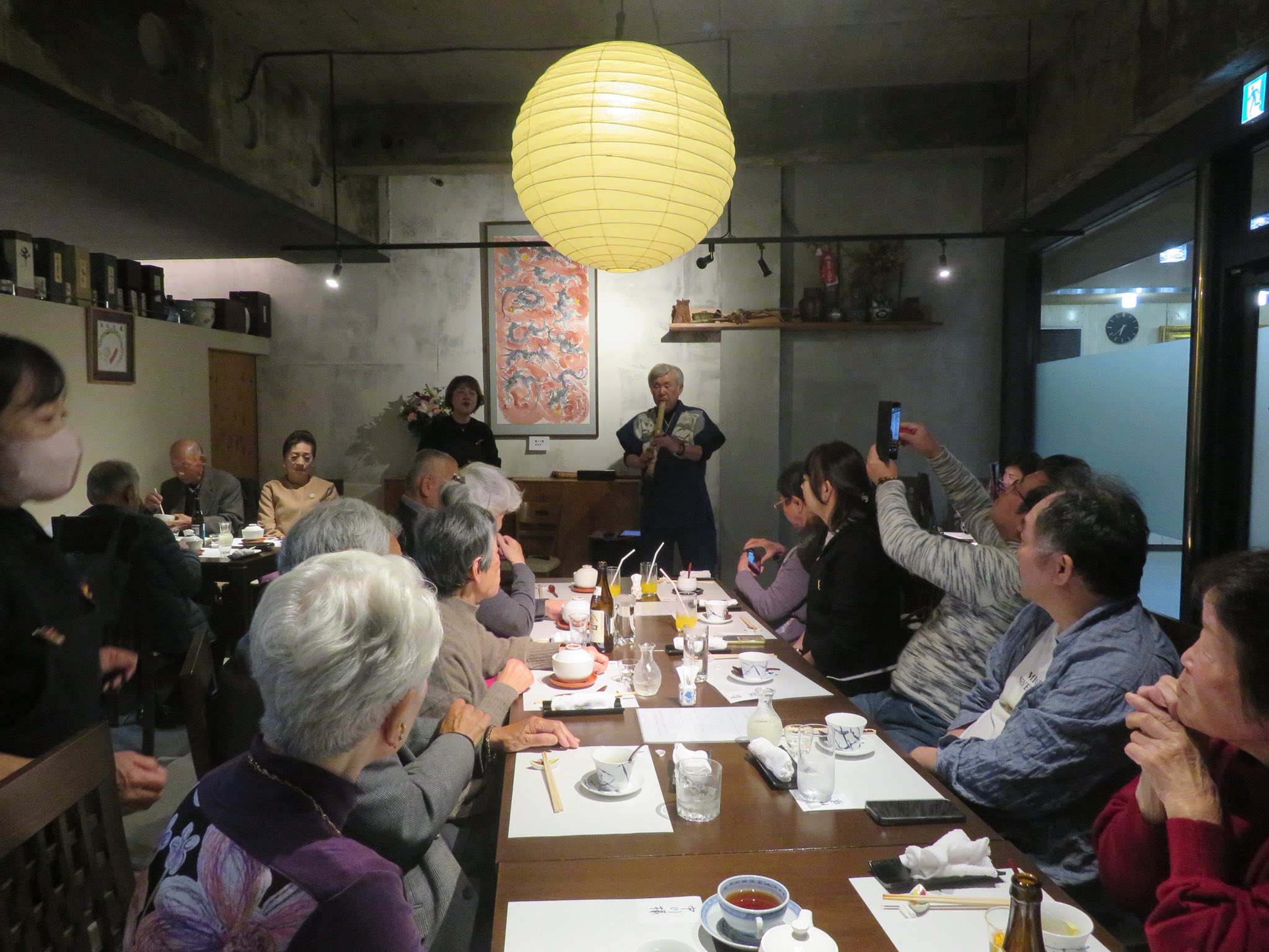 | 2025年11月21日(金)和食料理店「一旬菜TEC」 大和高田市 長いお付き合いです。民謡、三味線仲間の「桝谷聡子」さん ご主人が著名な料理人です、もう何度も演奏をさせて頂きました コロナですこしお休みしていましたが、復活!!です。 素敵なお客様です、聡子さんの「秋田長持ち唄」「俵つみ唄」 を素晴らしい声で歌ってくれました。 「多くの皆さんから〜やって欲しい」と |